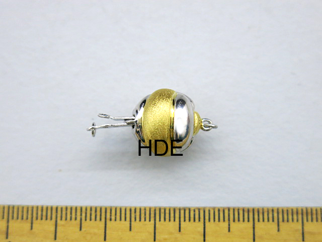 Kugelverschluss bicolor in 925 Silber vergoldet, Doppel Karabiner